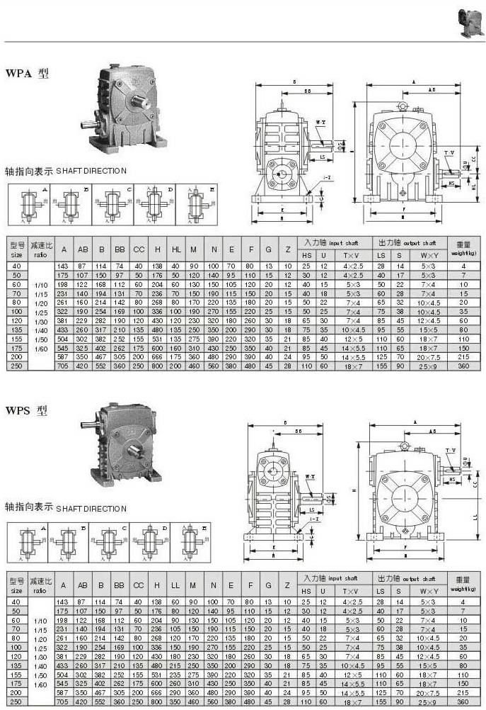 WAP型和WPS型型號(hào)參數(shù)圖表
