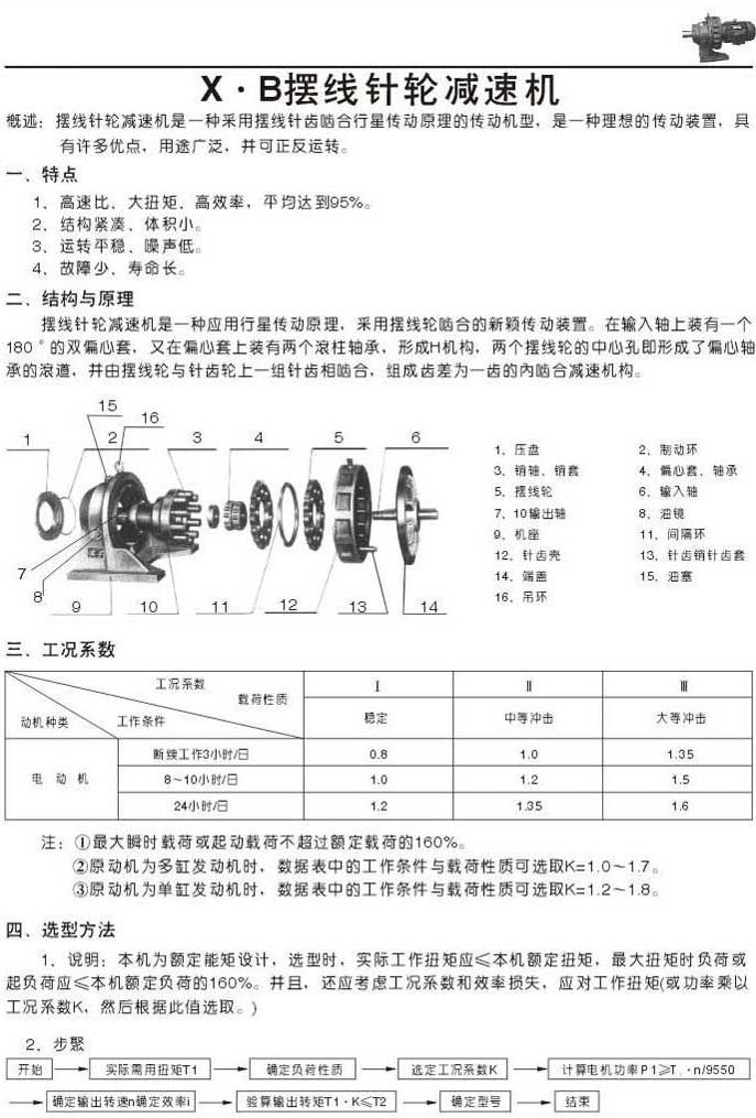 X . B擺線(xiàn)針輪減速機(jī)特點(diǎn)結(jié)構(gòu)與原理工況系數(shù)選型方法