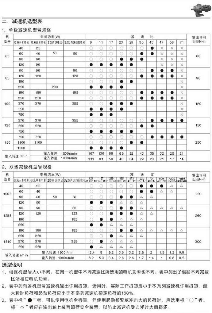 WB系列擺線針輪減速機(jī)選型表單級減速機(jī)型號規(guī)格表雙級減速機(jī)型號規(guī)格表選型說明
